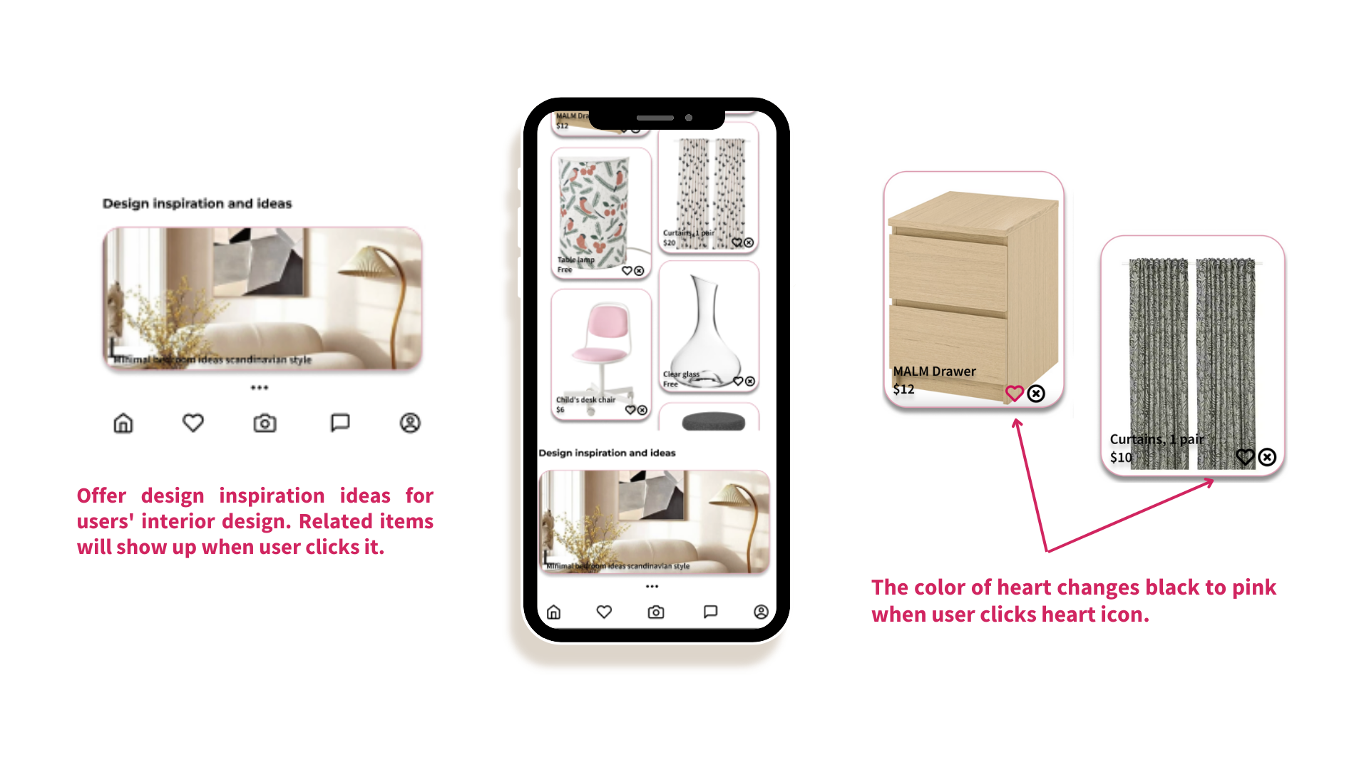 A key feature is notifying users when their ‘liked’ furniture is sold; it eases the trouble of not knowing whether the furniture is still available.