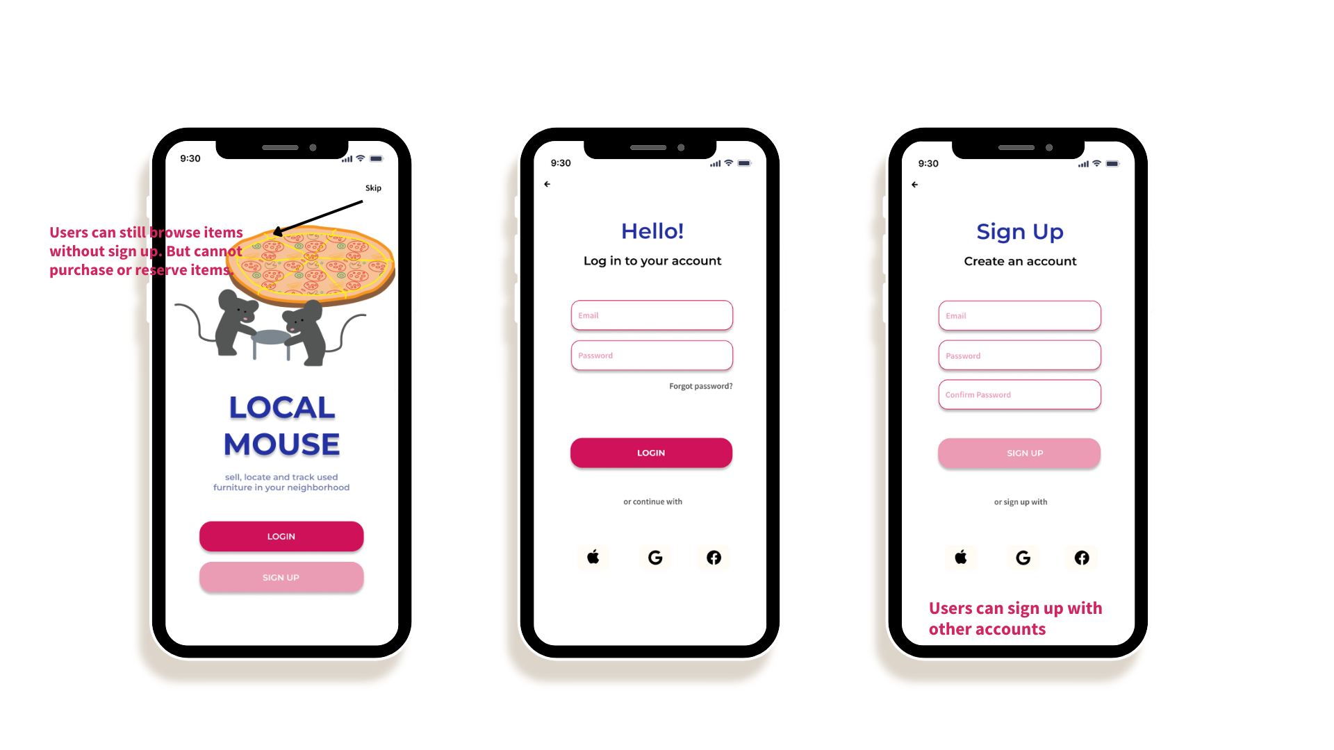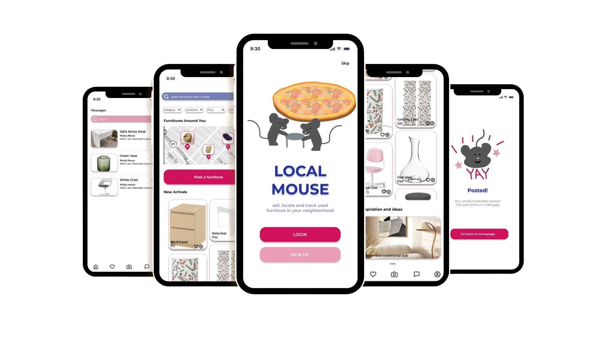Local Mouse is an app that allows users to sell, locate and track used furniture in their neighborhood.