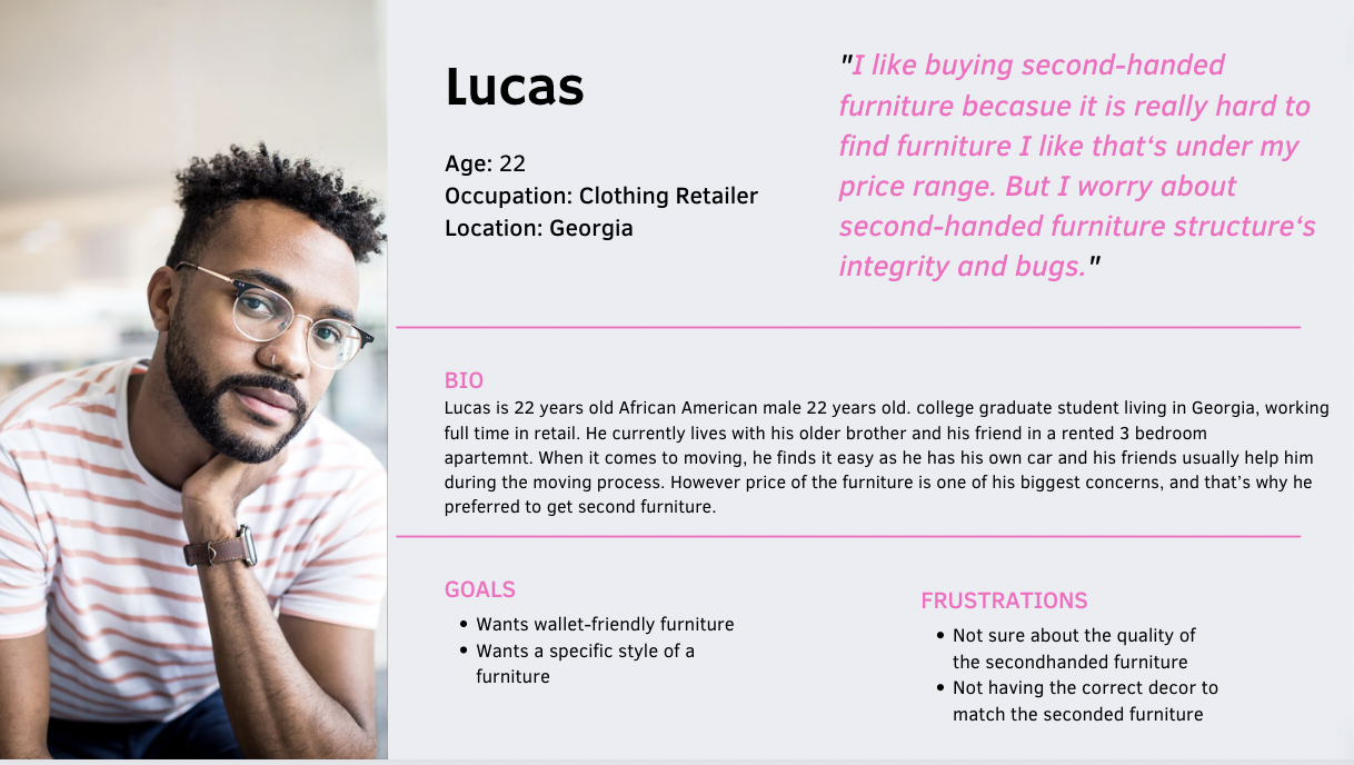 After analyzing the data that we had on hand we created 2 user personas that would be using the product that we create. Let’s see what they have to say about stooping for furniture.