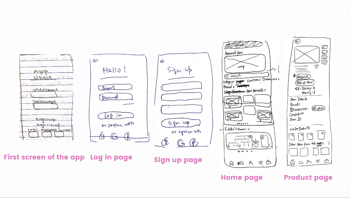 We aim to make main wireframes, such as the home and product pages, chat box pages, and checkout pages, simple and accessible for users. At the same time, we differentiate our app from our competitors by allowing users to reserve a piece of furniture they like and offering a white glove delivery service.